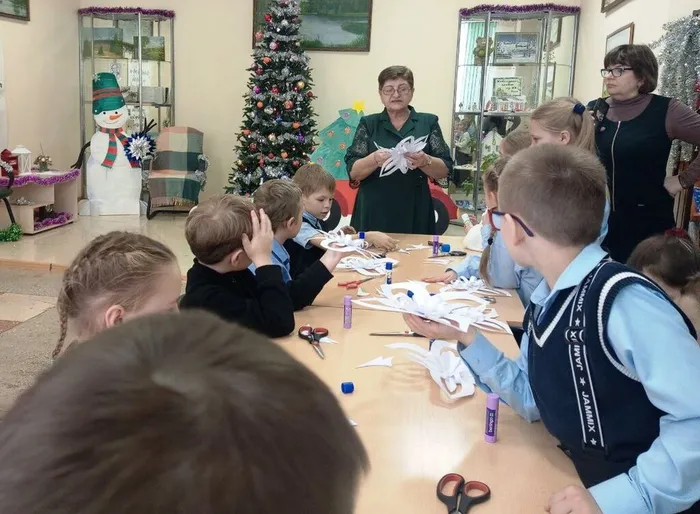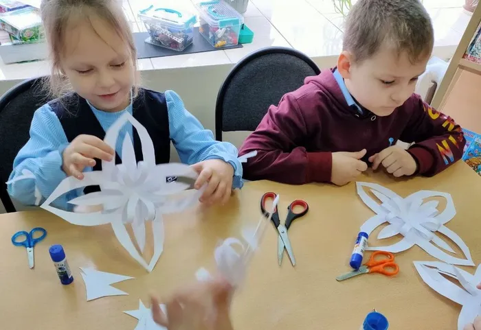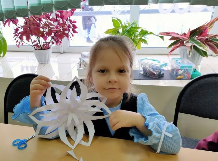 В завершение мероприятия юные гости проявили свои творческие способности, участвуя в мастер-классе по изготовлению объёмной снежинки. Каждая работа стала настоящим произведением искусства и символом зимнего волшебства.