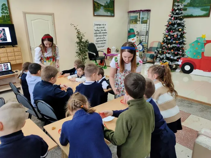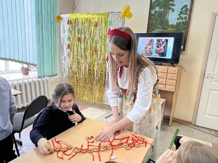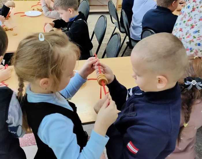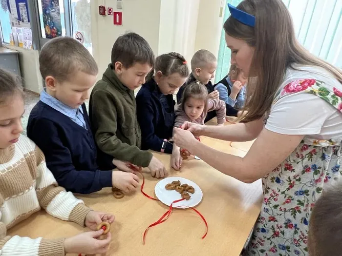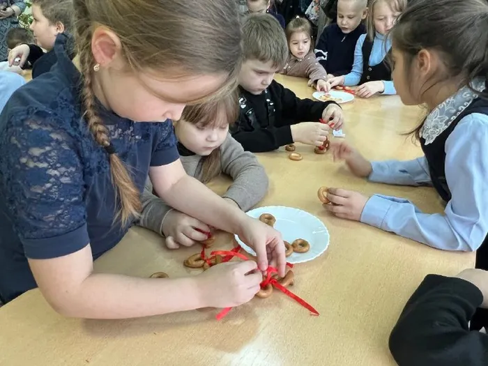 Завершением встречи было создание гирлянды из сушек для новогодней ёлки, которую дети мастерили с большим интересом.