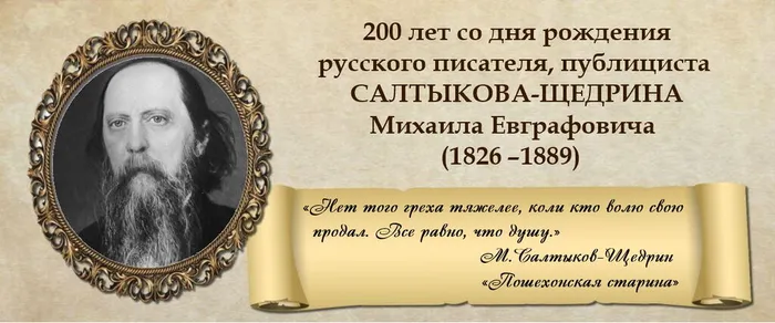 - 200-летие Михаила Евграфовича Салтыкова-Щедрина — русского писателя-реалиста, критика, автора острых сатирических произведений