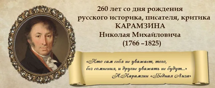 - 260-летие Николая Михайловича Карамзина - русского литератора, историка, издателя, основоположника русского сентиментализма.