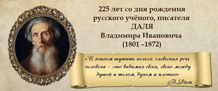 - 225-летие Владимира Ивановича Даля — русского писателя, этнографа и лексикографа, собирателя фольклора, военного врача, создателя «Толкового словаря живого великорусского языка»