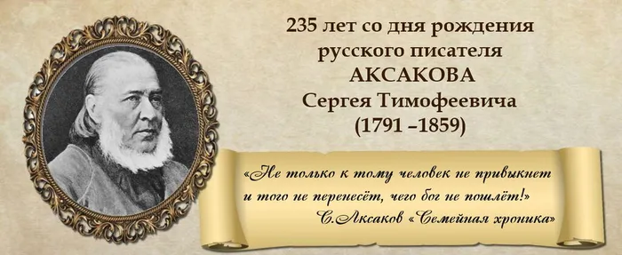 - 235-летие Сергея Тимофеевича Аксакова — русского писателя и общественного деятеля, литературного и театрального критика