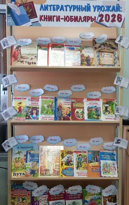 В Краснобродской библиотеке для читателей младшего школьного возраста начала работу книжная выставка-подиум «Литературный урожай: книги-юбиляры 2026». Экспозиция собрала книги, которые в этом году отмечают круглые даты. Юные читатели смогут прикоснуться к истории, познакомиться с произведениями, которые читали еще их бабушки и дедушки, узнать, как появились на свет любимые герои.