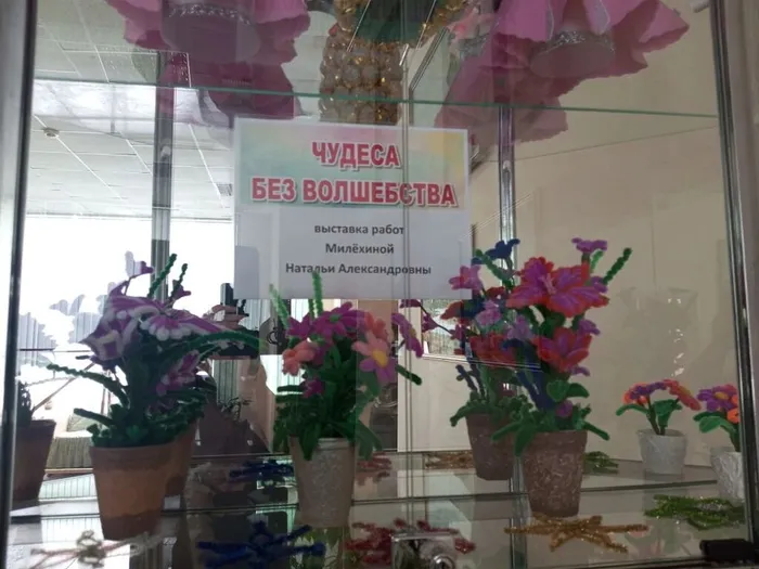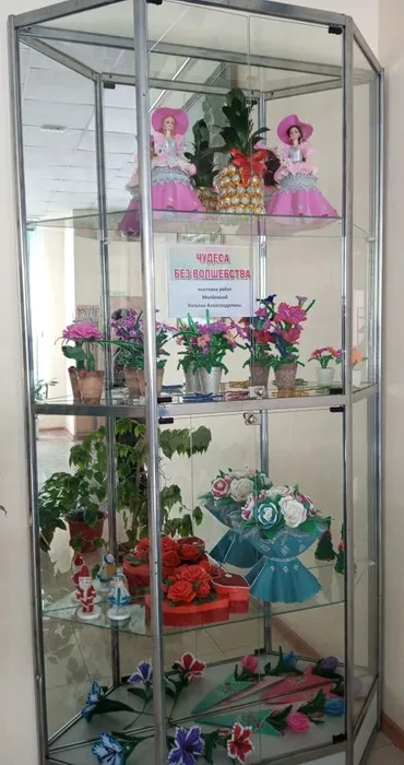 8 Марта – чудесный праздник всей женской половины человечества. В честь этого события в выставочном зале Краснобродской библиотеки открылась выставка декоративно-прикладного творчества Натальи Александровны Милёхиной «Чудеса без волшебства». Вот уже который день библиотечное пространство наполнено сказкой, которую создают творческие работы мастерицы. На выставке представлены композиции цветов, выполненных из синельной проволоки и фоамирана, светильники из фоамирана в форме кукол и цветов, шикарные подарочные упаковки. Последние вызывают особое удивление. Оказывается, упаковочная коробка может стать продолжением подарка, если её украсят нежная цветочная композиция, изысканные ленты, оригинальные элементы декора , подсветка.