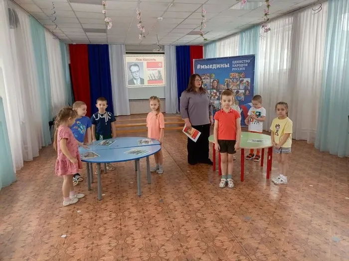 В начале мероприятия ребята познакомились с портретом Льва Кассиля. Из рассказа библиотекаря малыши узнали, что он был писателем, любившим детей и посвятившим им множество интересных книг. Особое внимание было уделено книге «Твои защитники», рассказывающей о смелых и отважных героях, которые не боялись опасностей и были готовы всегда прийти на помощь, защищая нашу Родину.